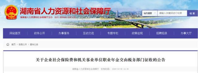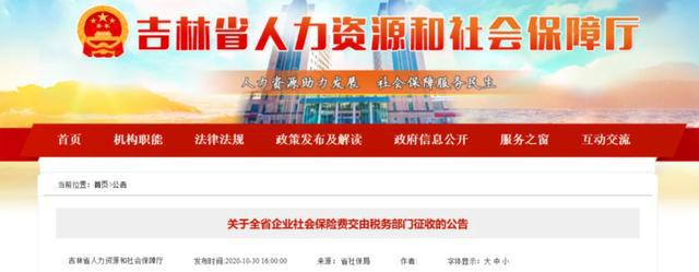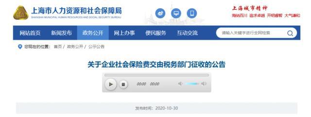 10月30日 北京、上海、山東、山西、湖南、四川、貴州、吉林、江西等地同時發(fā)布了《關(guān)于企業(yè)社會保險費交由稅務(wù)部門征收的公告》的通知。